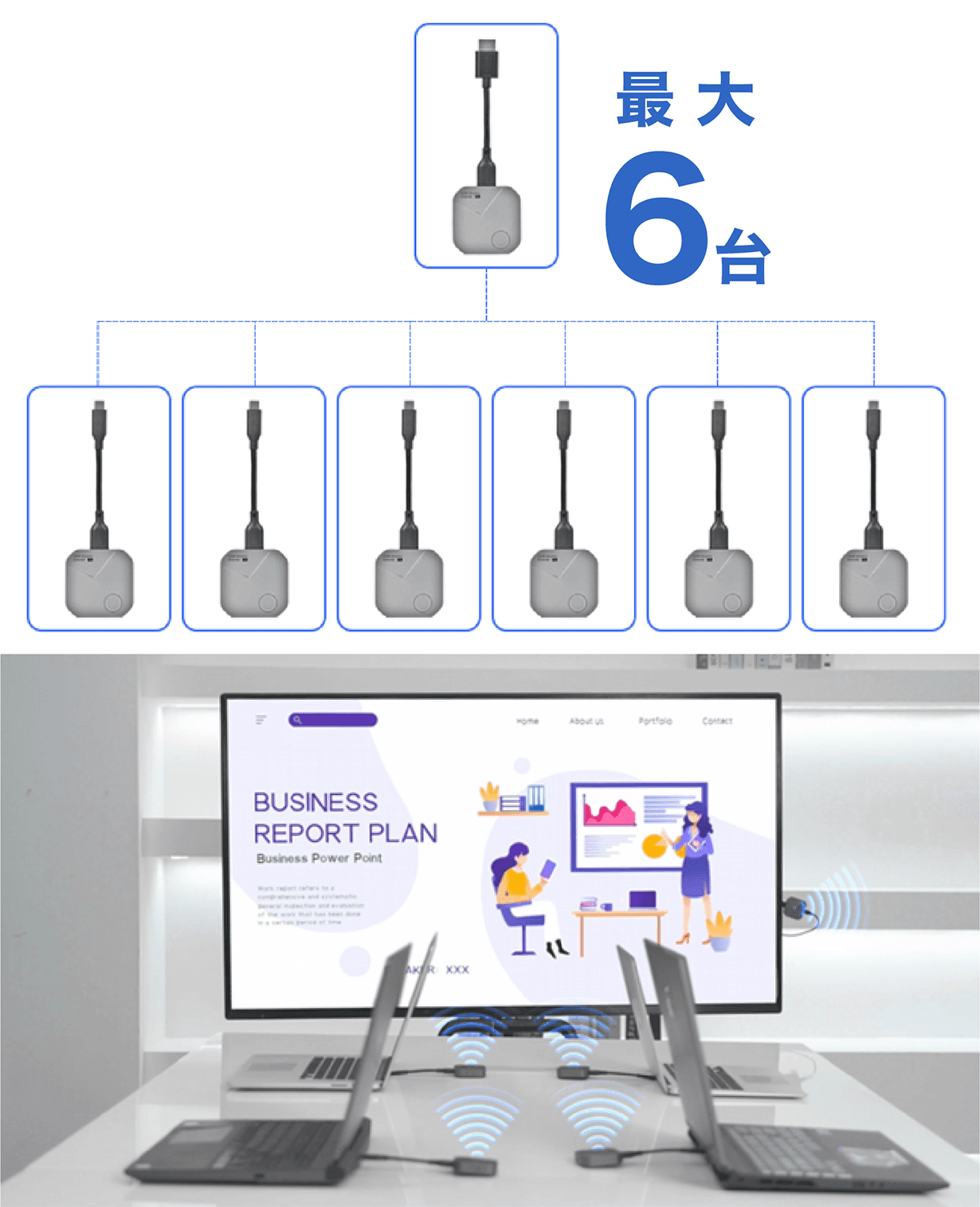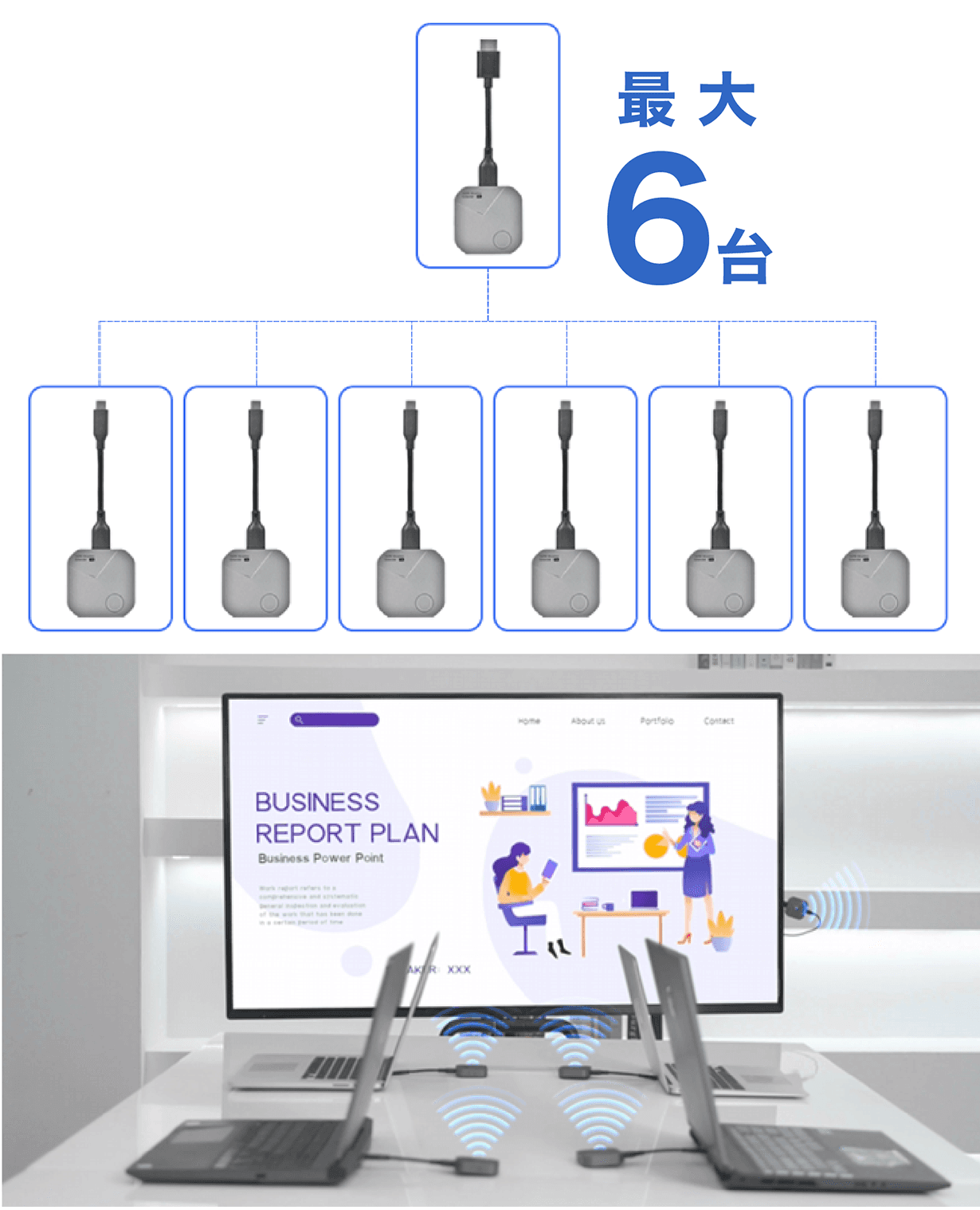 会議やプレゼンの場面でも、発表者が変わるたびにケーブルを差し替える必要はありません。